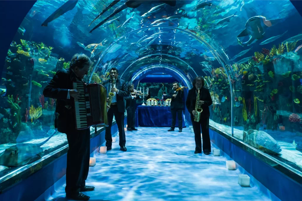 Imagina una experiencia única creada bajo el concepto AMARIUS, exclusivo de VOLOPAPILIO. Frente a un hermoso estanque lleno de vida marina, una mesa elegantemente decorada con rosas, velas y música en vivo da inicio a un momento inolvidable. El clímax de la velada llega cuando unos buzos emergen para revelar un mensaje especial, acompañado de un ritual artístico que toca el alma. Es una experiencia donde el arte, la emoción y una joya se entrelazan en perfecta armonía, transformando tu propuesta de matrimonio en una obra que perdurará en el tiempo.